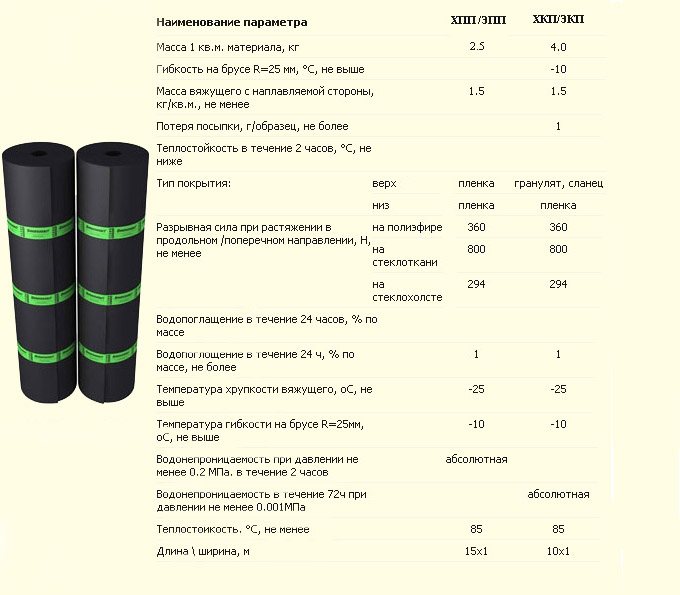 ТАБЛИЦА ХАРАКТЕРИСТИК БИКРОЭЛАСТА