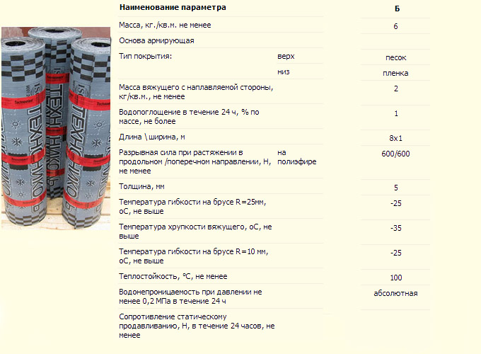 ТАБЛИЦА ХАРАКТЕРИСТИК ТЕХНОЭЛАСТМОСТ Б